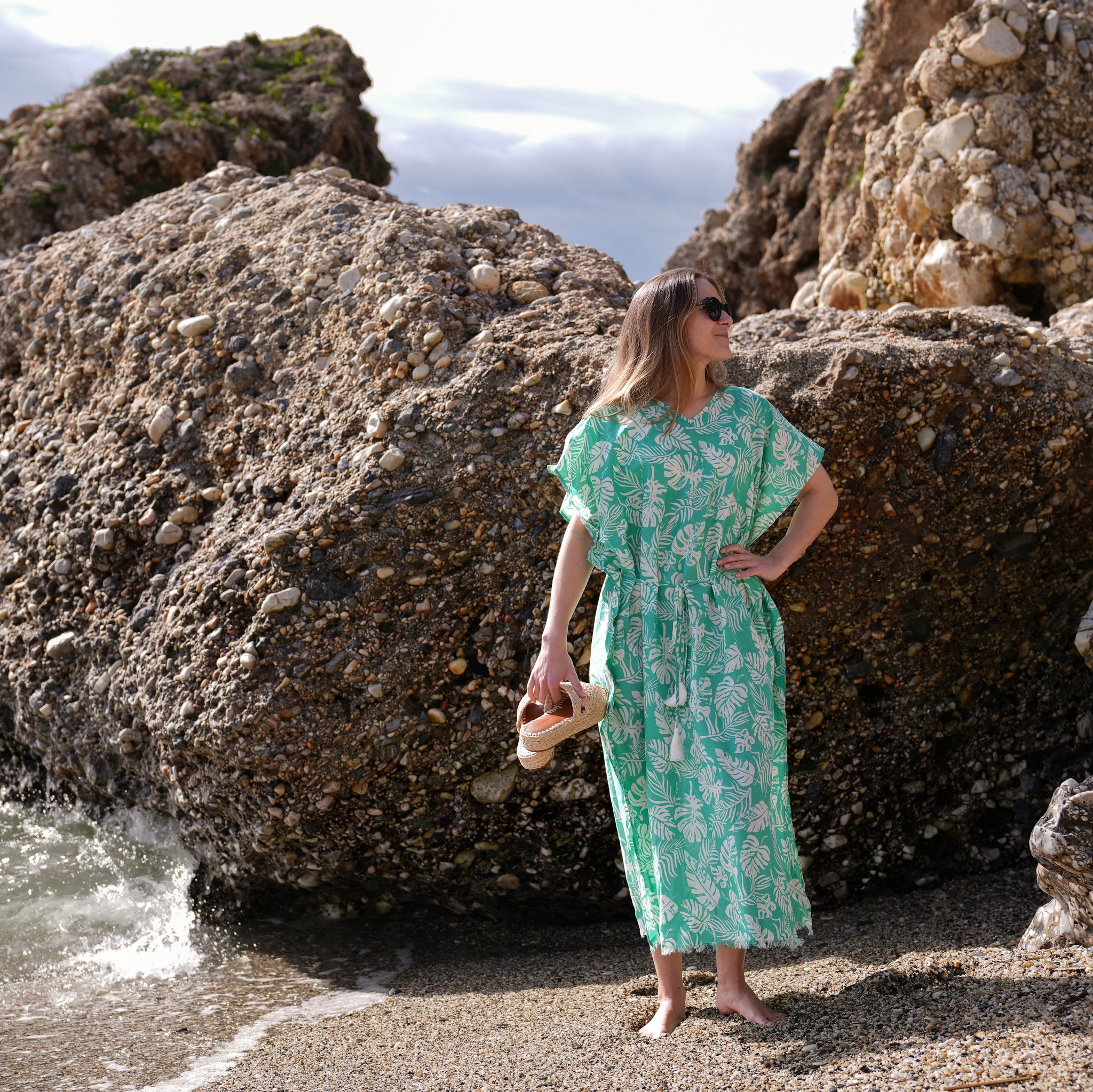 Med inspiration från den franska rivieran och tillverkad i naturliga material, är det en sommarklänning som kombinerar elegans och komfort.